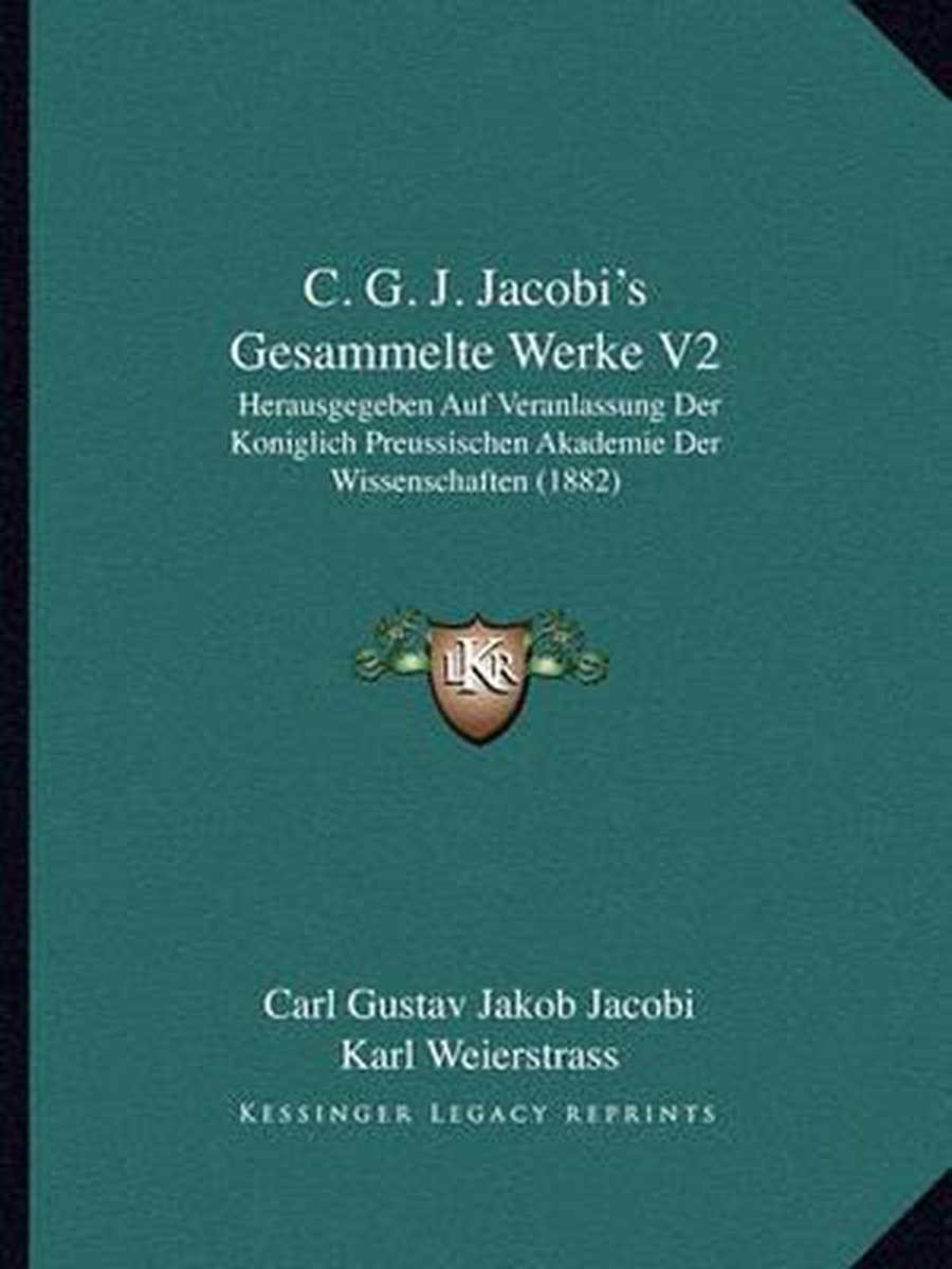 De meest gevonden boeken zijn C. G. J. Jacobi's Gesammelte Werke, Briefwechsel Zwischen C. G. J. Jacobi Und M. H. Jacobi, Neue Methode Zur Integration Partieller Diferentialgleichungen Erster Ordnung Zwischen Irgend Einer Anzahl Von Veranderlichen, Der Briefwechsel Zwischen C. G. J. Jacobi Und P. H. Von Fuss Uber Die Herausgabe Der Werke Leonhard Eulers en C. G. J. Jacobi's Gesammelte Werke V2.