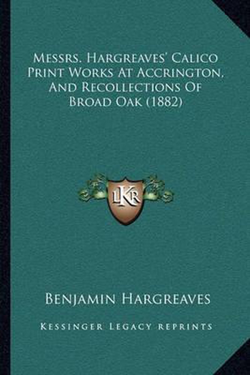 De meest gevonden boeken zijn Messrs. Hargreaves' Calico Print Works At Accrington, And Recollections Of Broad Oak (1882) en Messrs. Hargreaves' Calico Print Works At Accrington And Recollections Of Broad Oak.