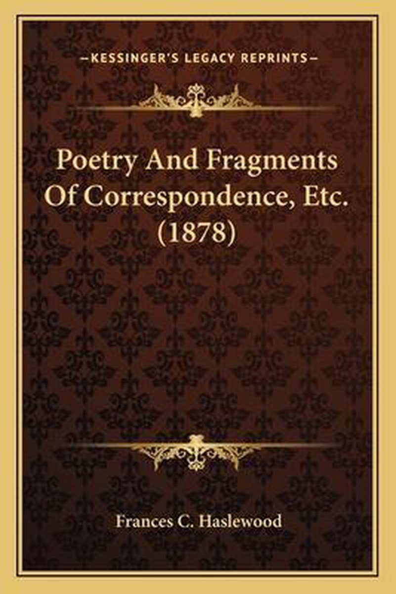 Het enige gevonden boek is Poetry And Fragments Of Correspondence, Etc. (1878).