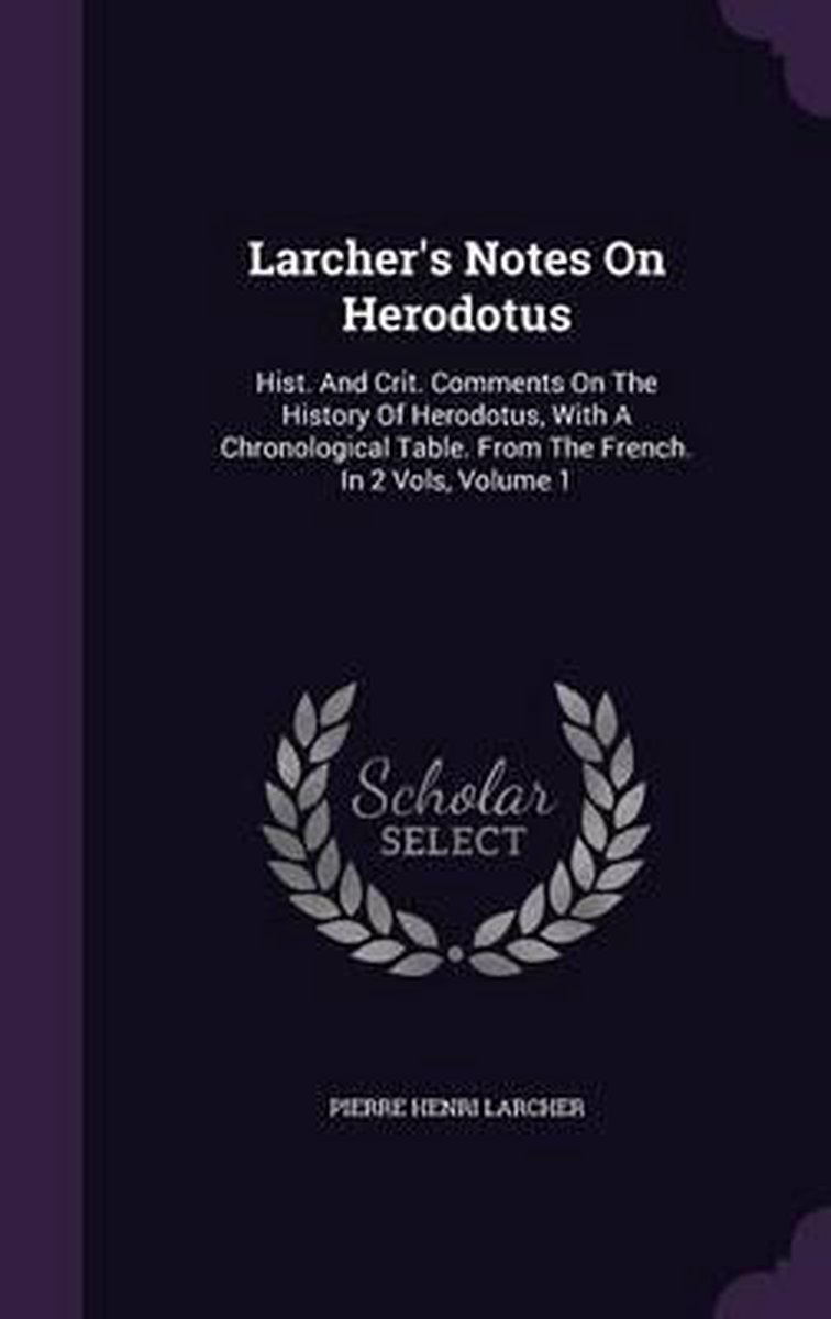 De meest gevonden boeken zijn Larcher's Notes On Herodotus, Supplement Ala Philosophie De L'histoire De Feu M. L'abbe Bazin (1769) en Larcher's Notes On Herodotus V1.