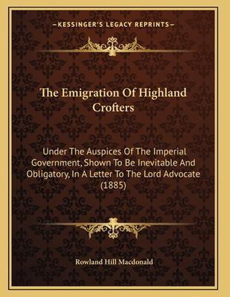 De meest gevonden boeken zijn The Emigration Of Highland Crofters Under The Auspices Of The Imperial Government en The Emigration Of Highland Crofters.