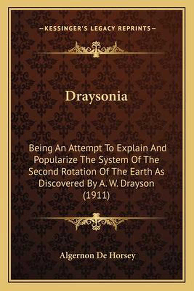 De meest gevonden boeken zijn Draysonia, Being An Attempt To Explain And Popularise The System Of The Second Rotation Of The Earth As Discovered By The Late Major-general A. W. Drayson .. en Draysonia.