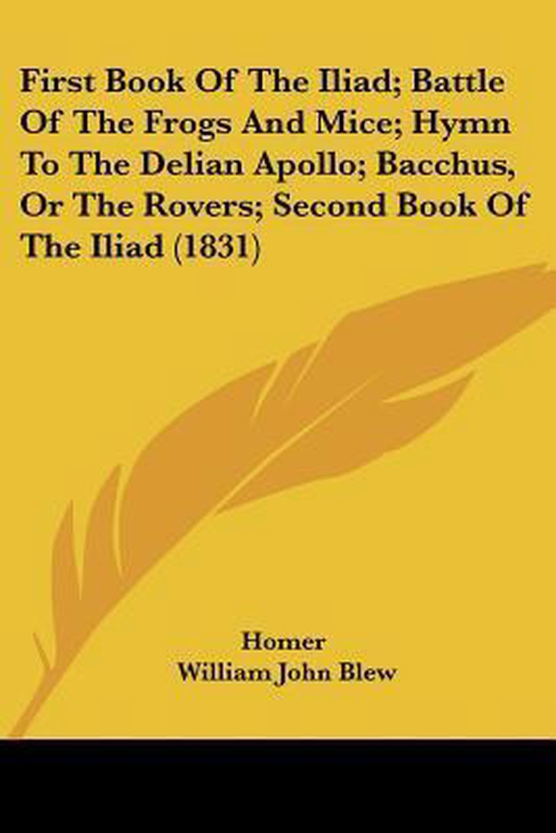 First Book Of The Iliad; Battle Of The Frogs And Mice; Hymn To The Delian Apollo; Bacchus, Or The Rovers; Second Book Of The Iliad (1831)