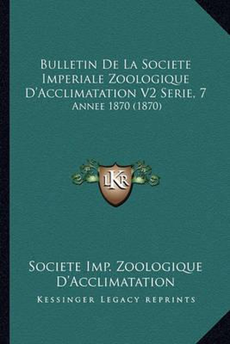Het enige gevonden boek is Bulletin De La Societe Imperiale Zoologique D'acclimatation V2 Serie, 7.