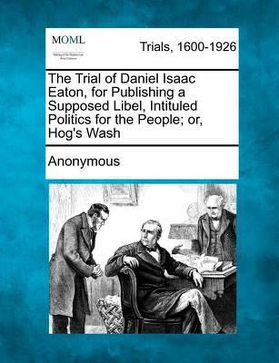 Het boek The Trial Of Daniel Isaac Eaton, For Publishing A Supposed Libel, Intituled Politics For The People; Or, Hog's Wash van de auteur Daniel Isaac Eaton is 1 maal gevonden, 1 maal nieuw en 0 maal tweedehands. "The Trial Of Daniel Isaac Eaton, For Publishing A Supposed Libel, Intituled Politics For The People; Or, Hog's Wash" is nieuw te koop vanaf € 29,99 bij Bol.com.