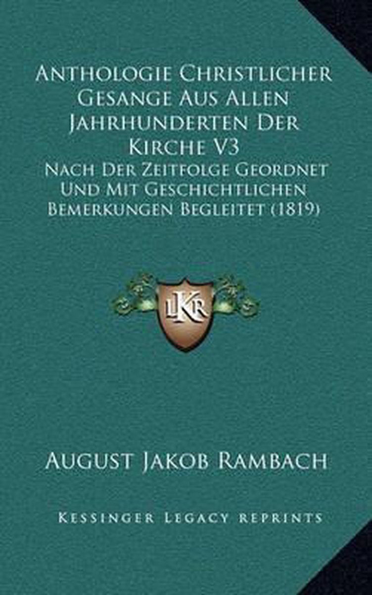 De meest gevonden boeken zijn Anthologie Christlicher Gesange Aus Allen Jahrhunderten Der Kirche V3 en Anthologie Christlicher Gesange Aus Allen Jahrhunderten Der Kirche.