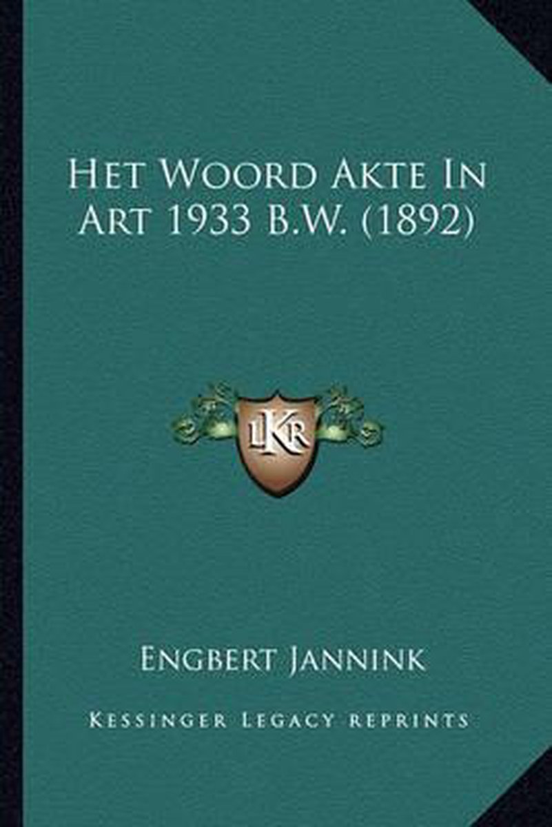 Het enige gevonden boek is Het Woord Akte In Art 1933 B.W. (1892).
