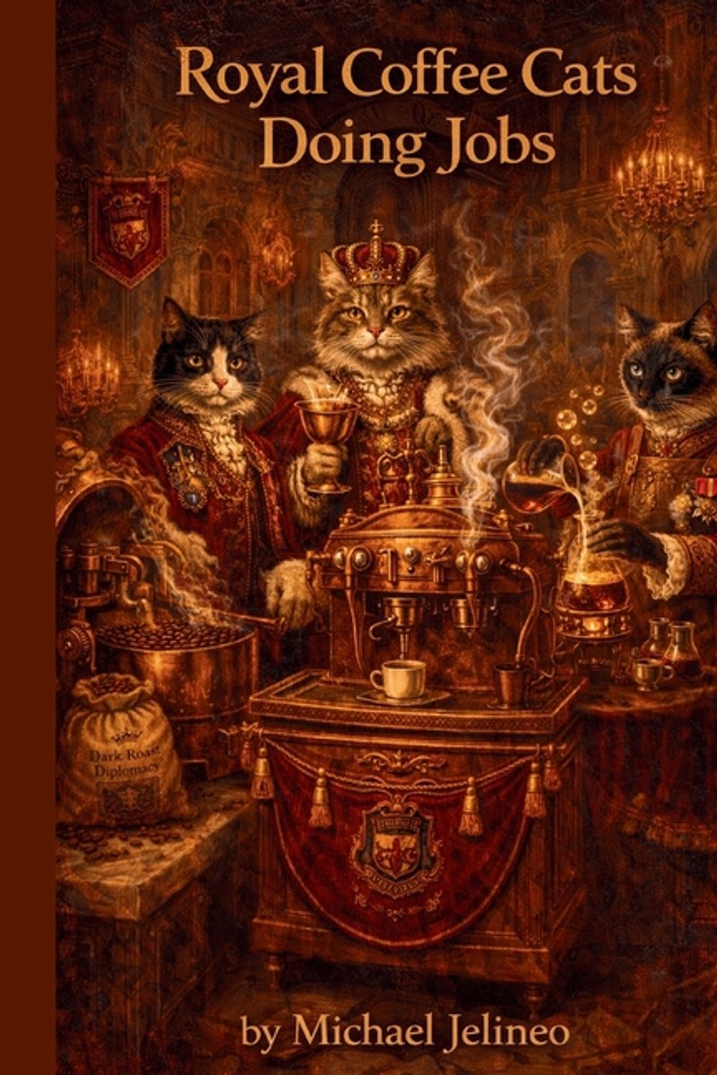 Het enige gevonden boek is Royal Coffee Cats Doing Jobs.