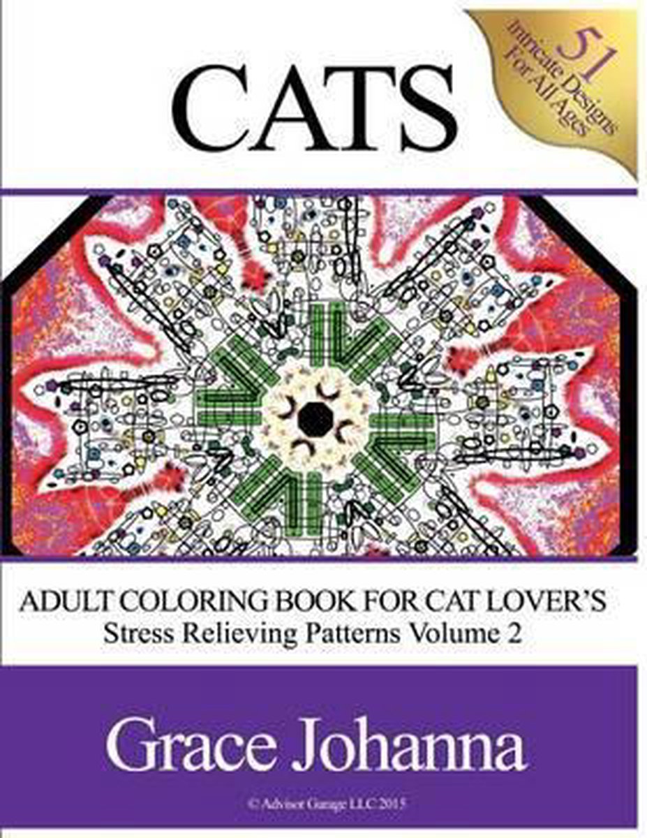 Het enige gevonden boek is Adult Coloring Book For Cat Lovers: Stress Relieving Patterns Volume 2- Adult Coloring Book For Cat Lovers.