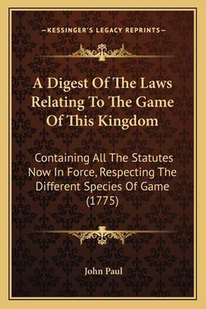 De meest gevonden boeken zijn The Laws Relating To Landlords And Tenants, The Parish Officer's Complete Guide, What Is New Theology? (1921), A Digest Of The Laws Relating To The Game Of This Kingdom A Digest Of The Laws Relating To The Game Of This Kingdom en A Digest Of The Game Laws.