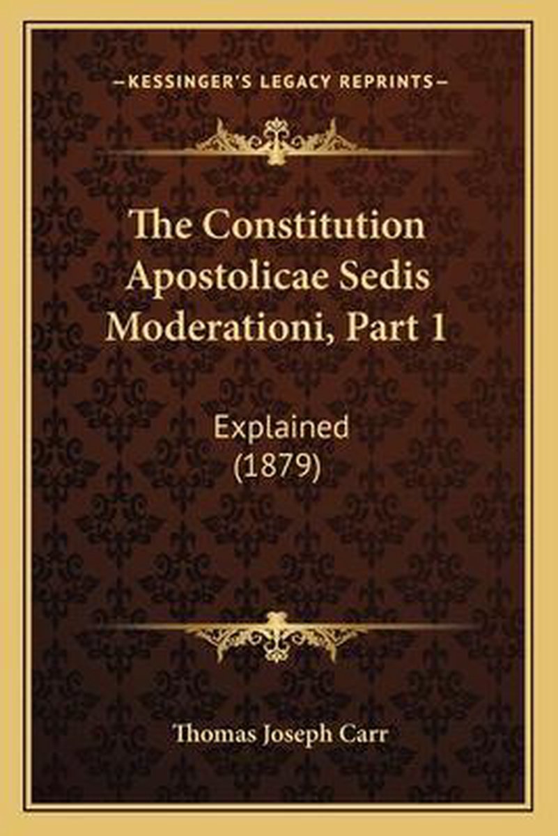 Het enige gevonden boek is The Constitution Apostolicae Sedis Moderationi, Part 1.