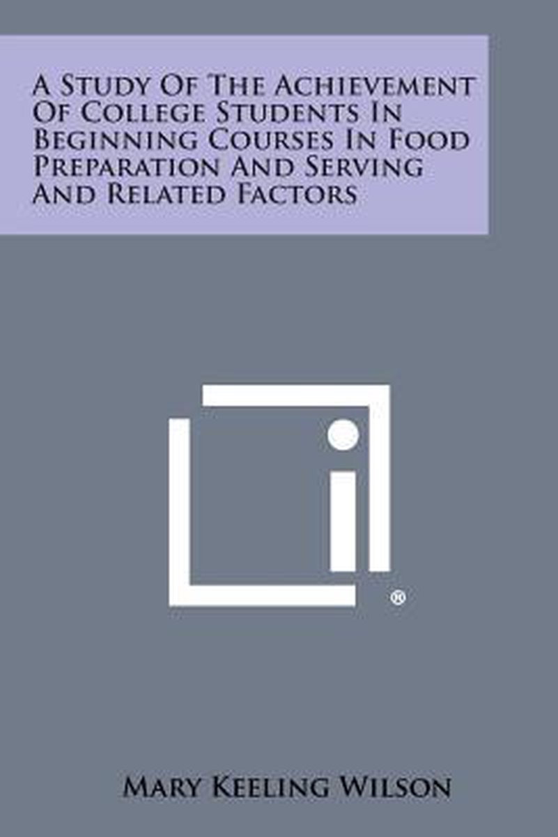 Het enige gevonden boek is A Study Of The Achievement Of College Students In Beginning Courses In Food Preparation And Serving And Related Factors.