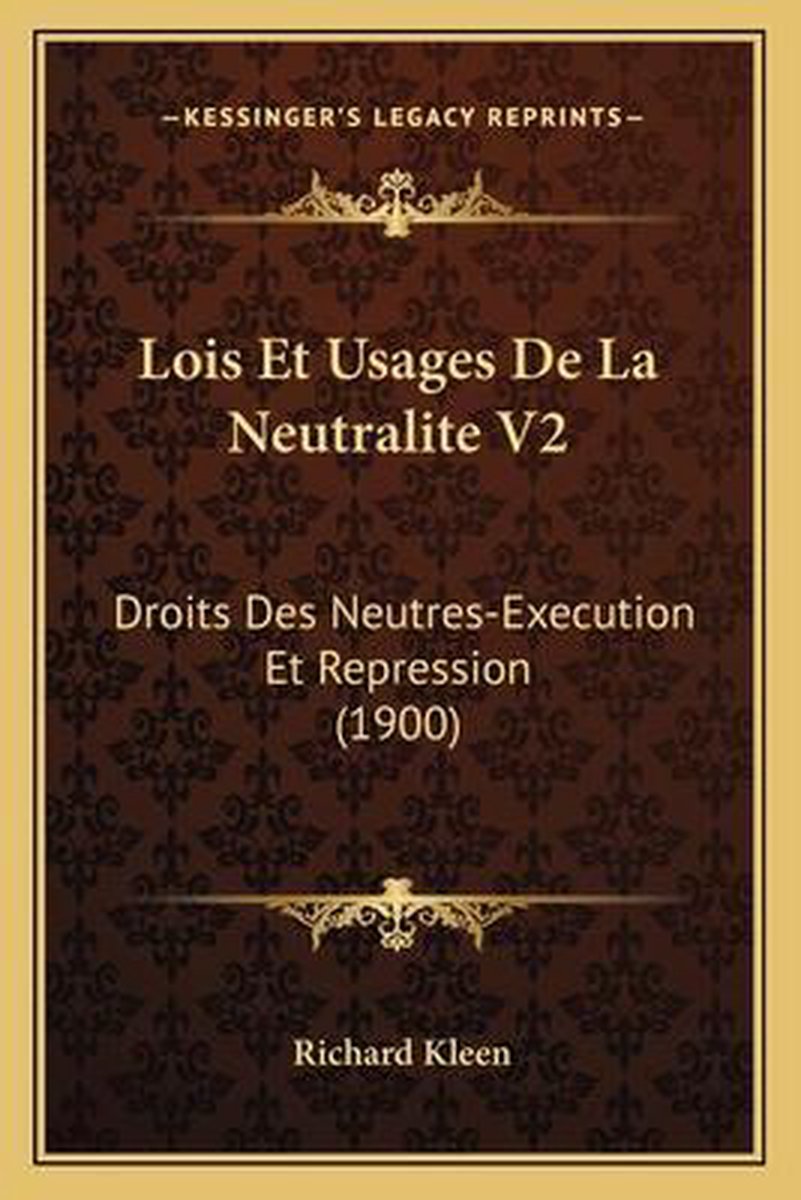Het enige gevonden boek is Lois Et Usages De La Neutralite V2.