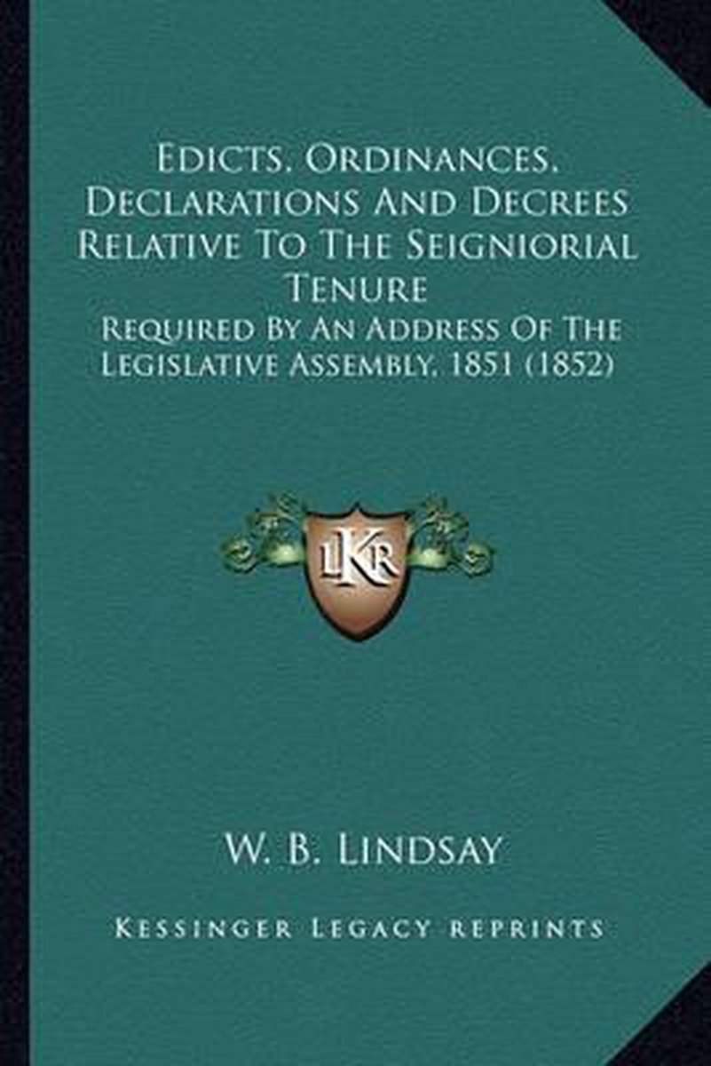 Edicts, Ordinances, Declarations And Decrees Relative To The Seigniorial Tenure