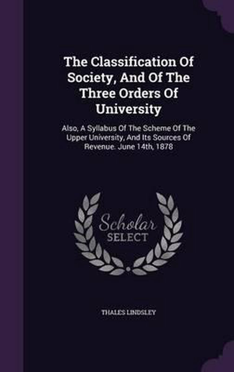 Het enige gevonden boek is The Classification Of Society, And Of The Three Orders Of University.