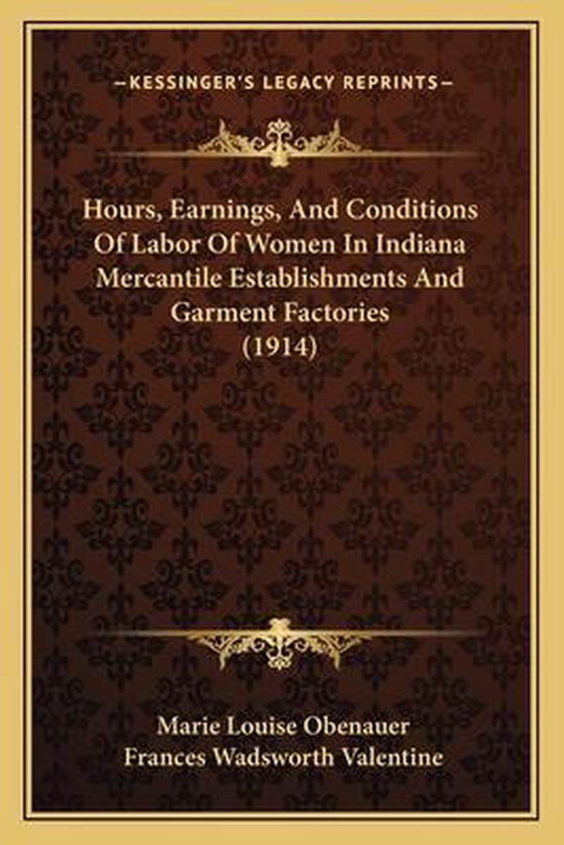 De meest gevonden boeken zijn Hours, Earnings, And Conditions Of Labor Of Women In Indiana Mercantile Establishments And Garment Factories (1914), Working Hours Of Women In The Pea Canneries Of Wisconsin en Hours, Earnings, And Conditions Of Labor Of Women In Indianahours, Earnings, And Conditions Of Labor Of Women In Indiana Mercantile Establishments And Garment Factories (1914) Mercantile Establishments And Garment Factories (1914).