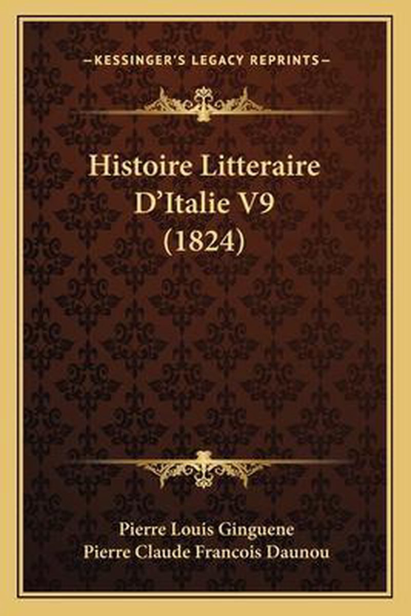 De meest gevonden boeken zijn Lettres De P. L. Ginguene (1809), Histoire Litteraire D'italie V9 (1824), Histoire Litteraire D'italie, Oeuvres De Ponce Denis Le Brun, Volume 4 en Histoire Litt?raire D'italie (2/9).