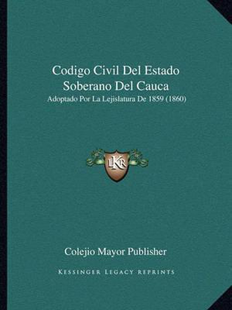 Het enige gevonden boek is Codigo Civil Del Estado Soberano Del Cauca.