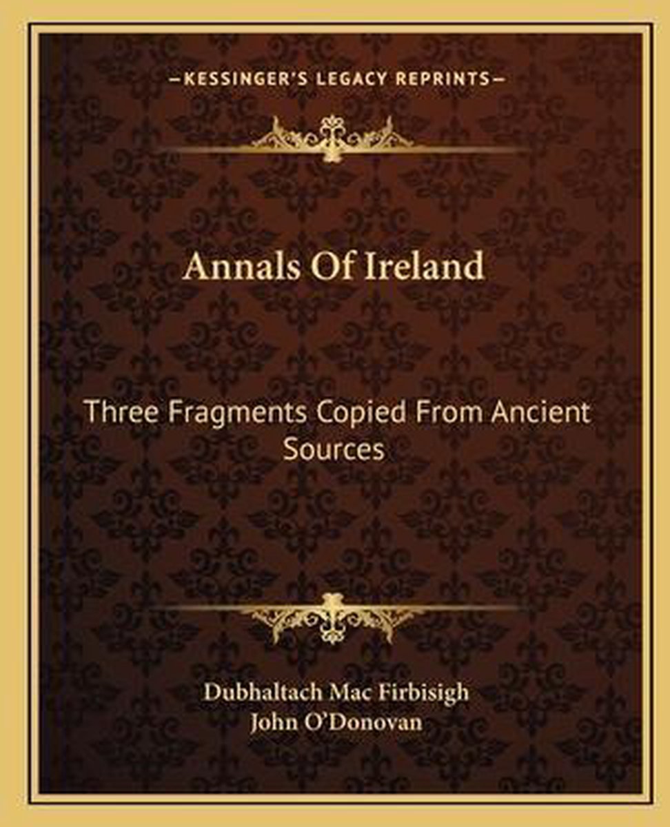 De meest gevonden boeken zijn Annals Of Ireland en Annals Of Ireland. Three Fragments, Copied From Ancient Sources By Dubhaltach Macfirbisigh; And Edited, With A Translation And Notes, From A Manuscript Preserved In The Burgundian Library At Brussels.