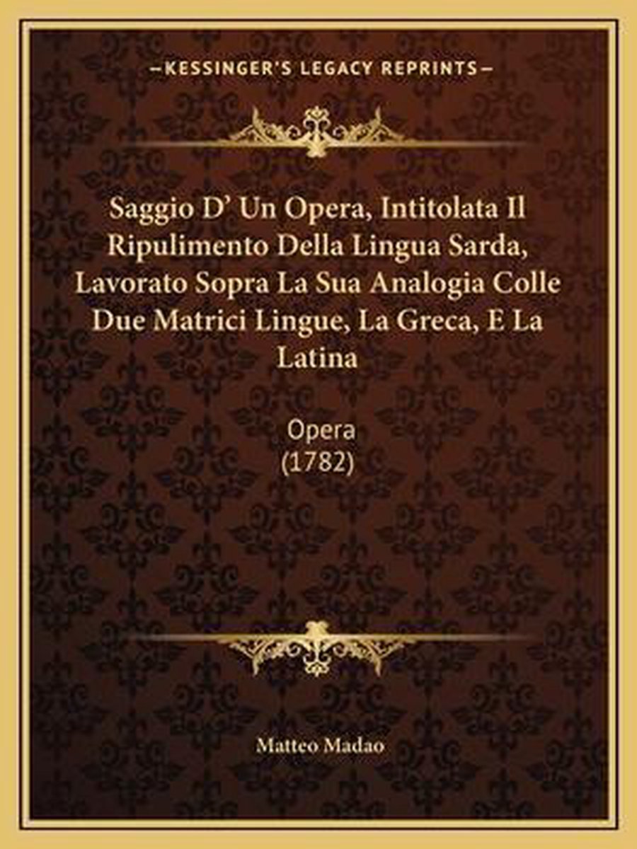 De meest gevonden boeken zijn Saggio D' Un Opera, Intitolata Il Ripulimento Della Lingua Sarda, Lavorato Sopra La Sua Analogia Colle Due Matrici Lingue, La Greca, E La Latina en Saggio D'un'opera, Intitolata Il Ripulimento Della Lingua Sarda.
