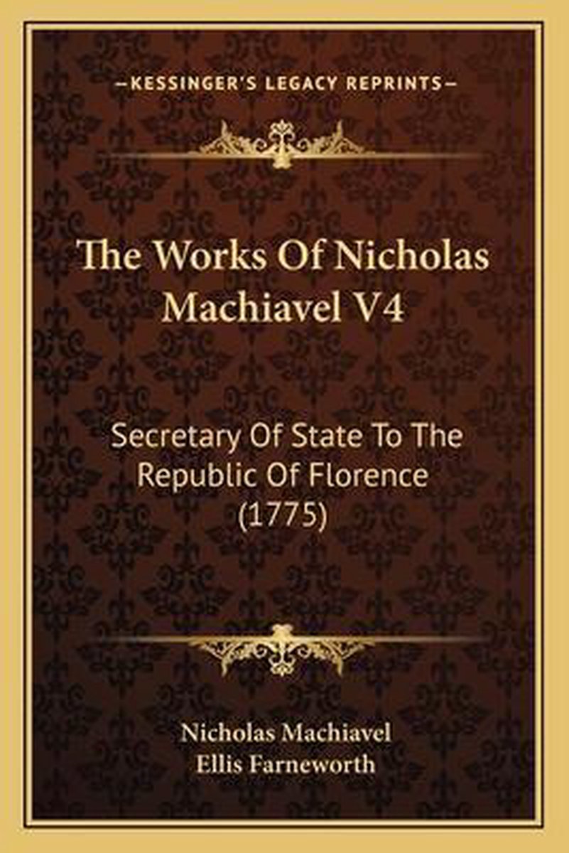Het enige gevonden boek is The Works Of Nicholas Machiavel V4.