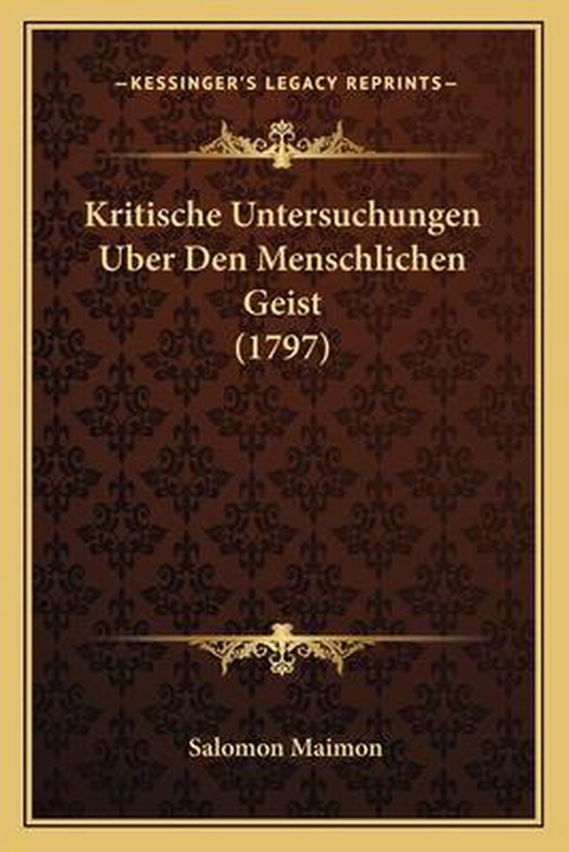 De meest gevonden boeken zijn Philosophisches Worterbuch, Part 1, Kritische Untersuchungen Uber Den Menschlichen Geist (1797), Essay On Transcendental Philosophy en Mijn Levensverhaal | Salomon Maimon.