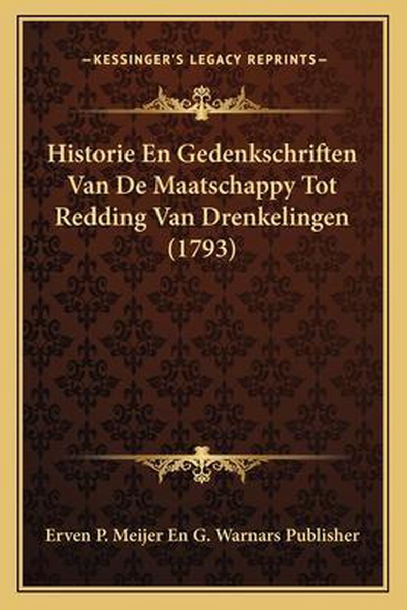 Het enige gevonden boek is Historie En Gedenkschriften Van De Maatschappy Tot Redding Van Drenkelingen (1793).