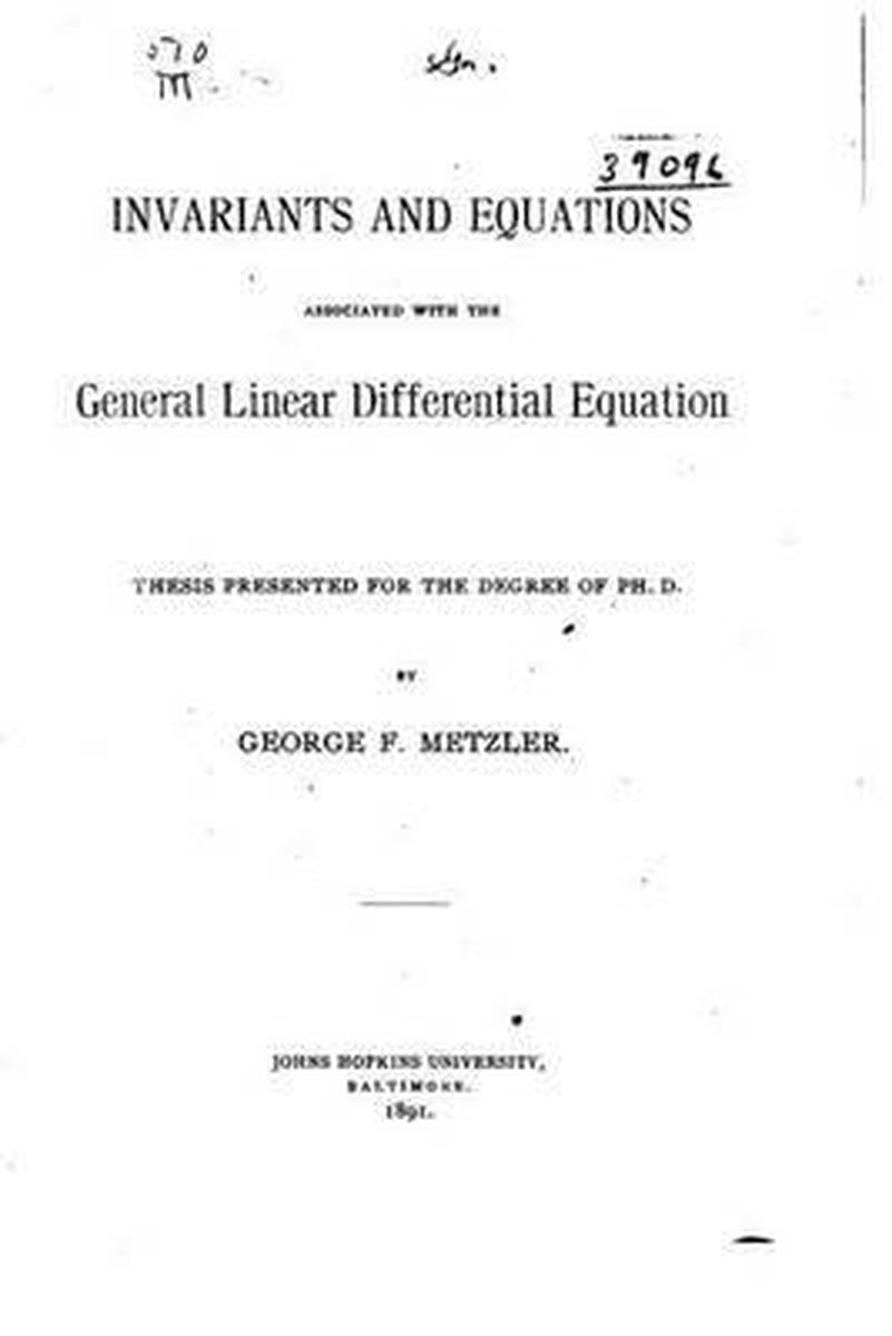 Het enige gevonden boek is Invariants And Equations Associated With The General Linear Differential Equation.