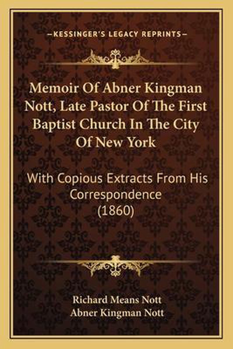 De meest gevonden boeken zijn Memoirs Of Abner Kingman Nott, Late Pastor Of The First Baptist Church In The City Of New York en Memoir Of Abner Kingman Nott, Late Pastor Of The First Baptist Church In The City Of New York.