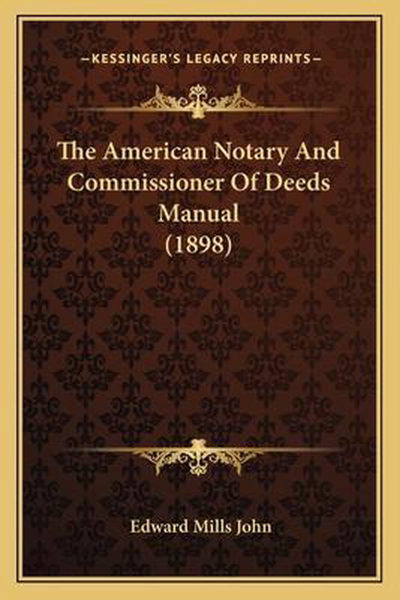 De meest gevonden boeken zijn The American Notary And Commissioner Of Deeds Manual; The General And Statutory Requirements Of These Officers Pertaining To Acknowledgments, Affidavits, Oaths, Depositions And Protests, With Forms, John's American Notary And Commissioner Of Deeds Manual en The American Notary And Commissioner Of Deeds Manual (1898).