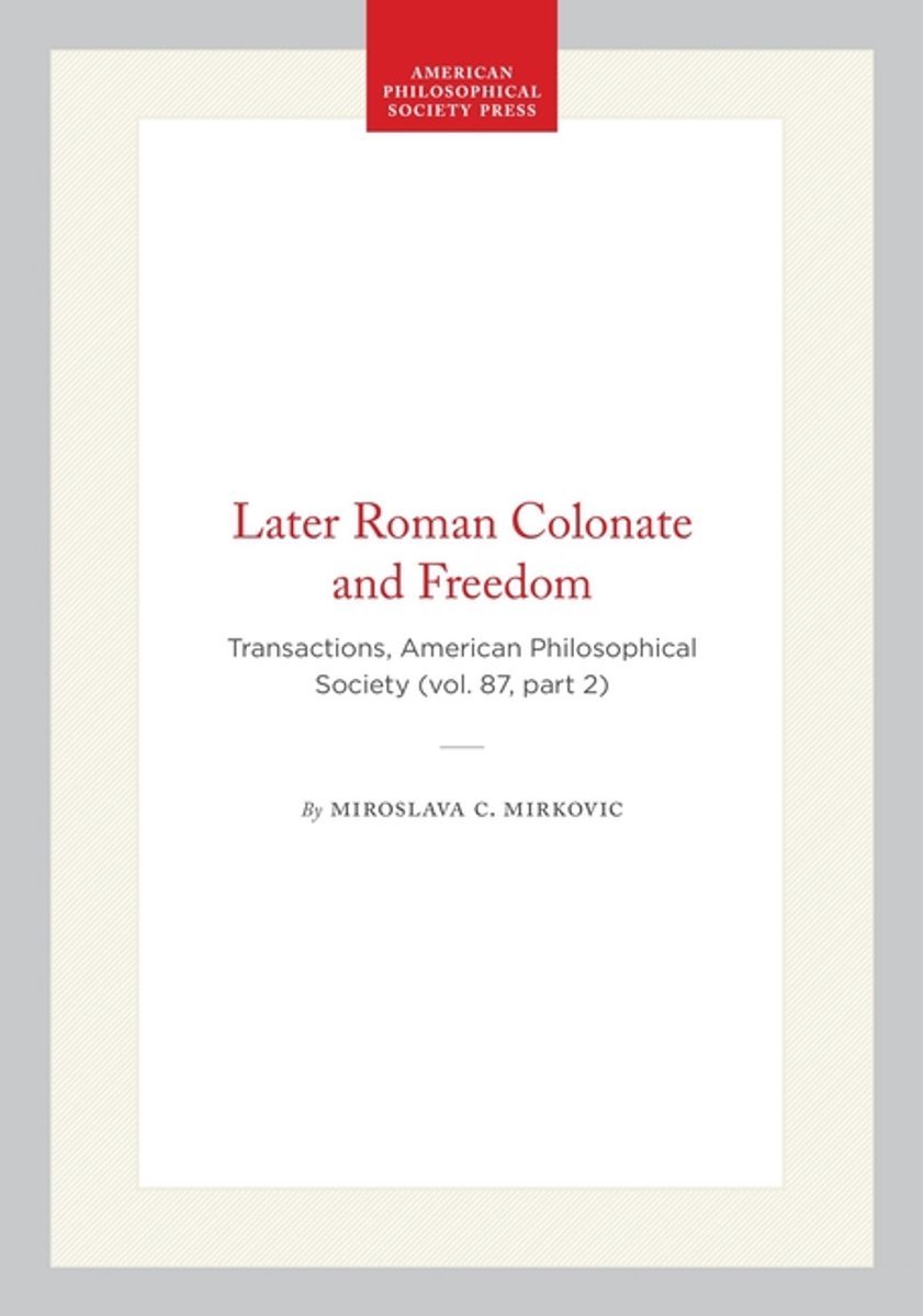Het enige gevonden boek is Transactions Of The American Philosophical Society- Later Roman Colonate And Freedom.