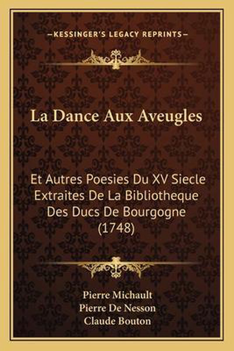 De meest gevonden boeken zijn La Danse Aux Aveugles, Et Autres Po Sies Du Xve Si Cle... en La Dance Aux Aveugles.