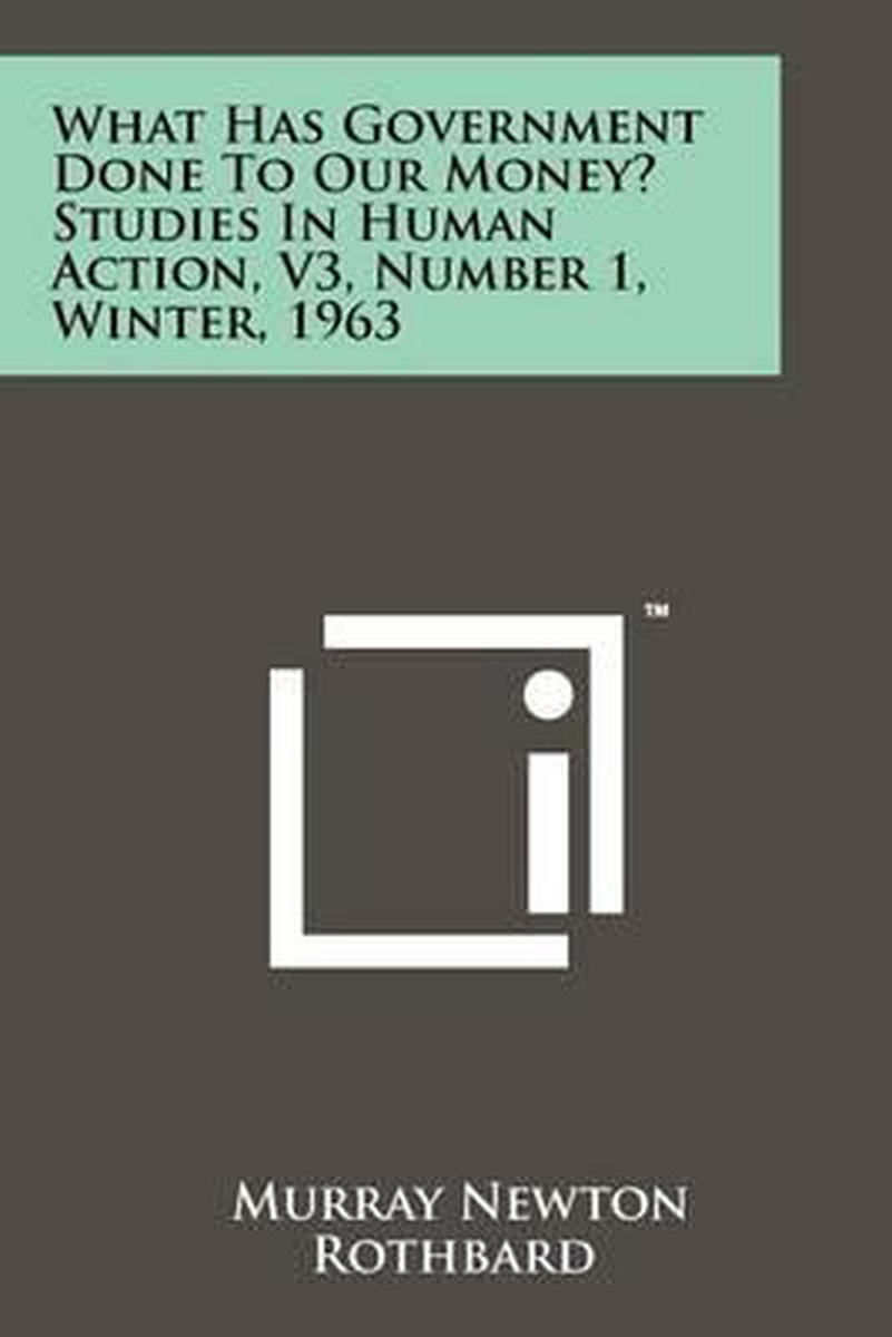 Het enige gevonden boek is What Has Government Done To Our Money? Studies In Human Action, V3, Number 1, Winter, 1963.