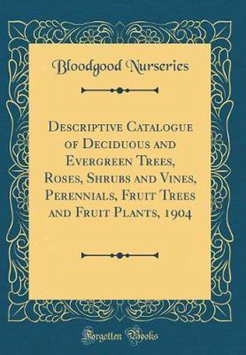 Het enige gevonden boek is Descriptive Catalogue Of Deciduous And Evergreen Trees, Roses, Shrubs And Vines, Perennials, Fruit Trees And Fruit Plants, 1904 (classic Reprint).