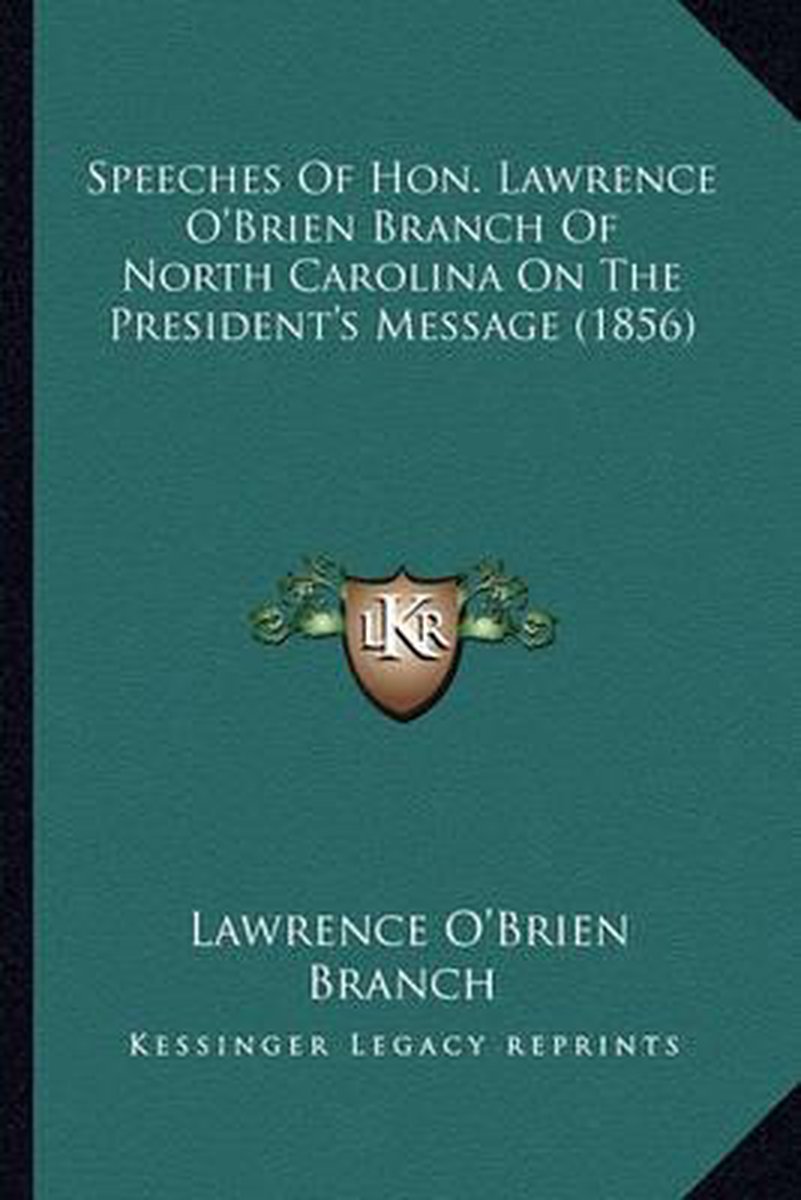 De meest gevonden boeken zijn Speeches Of Hon. Lawrence O'brien Branch Of North Carolina On The President's Message (1856) en Congressional Intervention In Regard To Slavery In The Terrtories. Letter Of Lawrence O'b. Branch To His Constituents. May 15th, 1860..