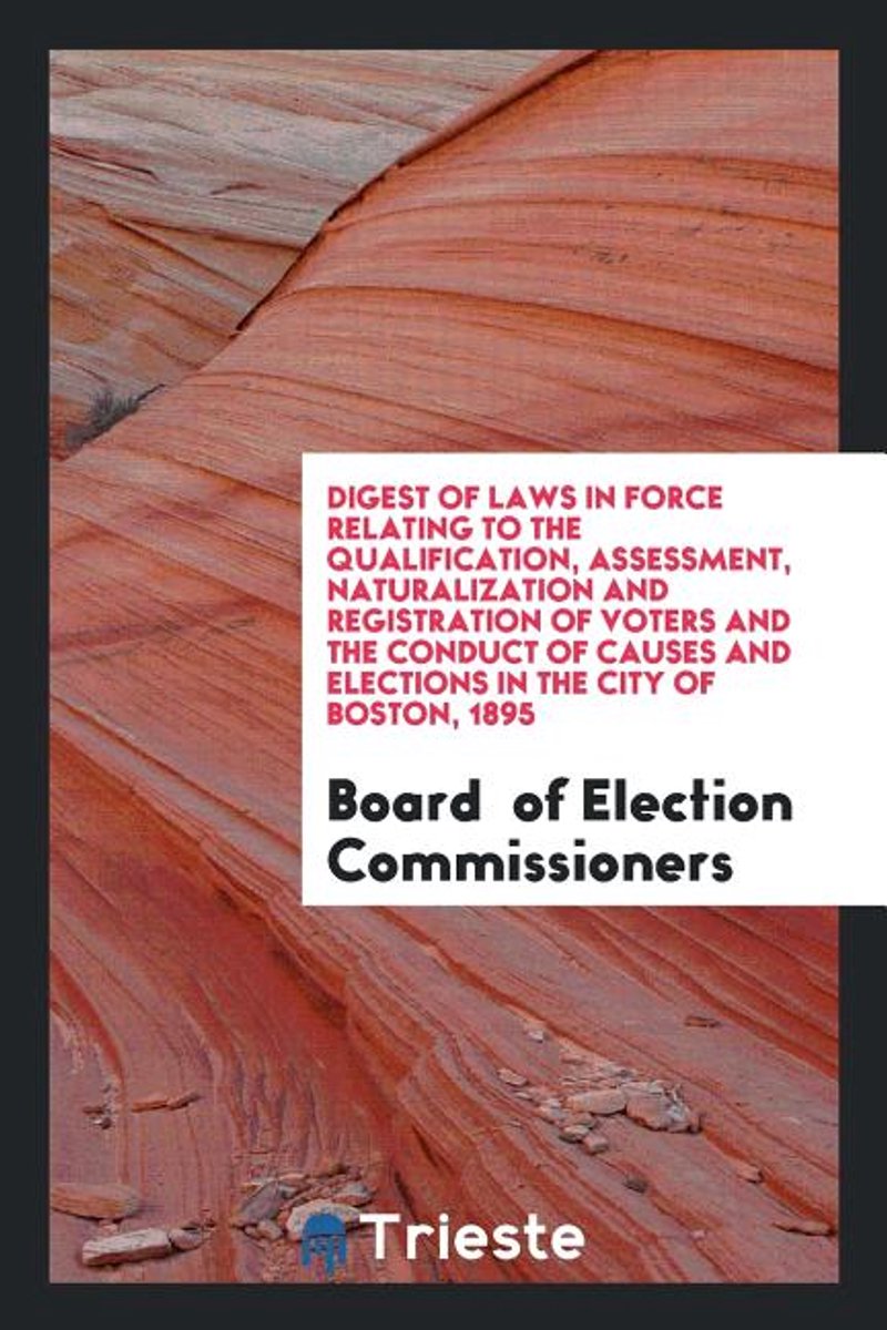 Het enige gevonden boek is Digest Of Laws In Force Relating To The Qualification, Assessment, Naturalization And Registration Of Voters And The Conduct Of Causes And Elections In The City Of Boston, 1895.