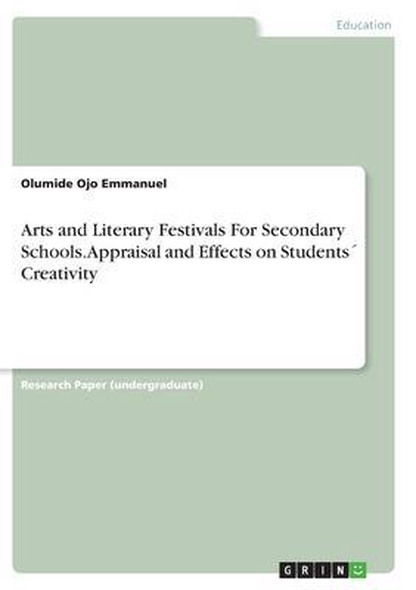Het enige gevonden boek is Arts And Literary Festivals For Secondary Schools. Appraisal And Effects On Students? Creativity.