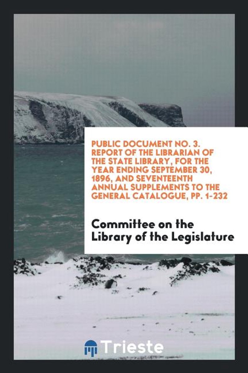 Het enige gevonden boek is Public Document No. 3. Report Of The Librarian Of The State Library, For The Year Ending September 30, 1896, And Seventeenth Annual Supplements To The General Catalogue, Pp. 1-232.
