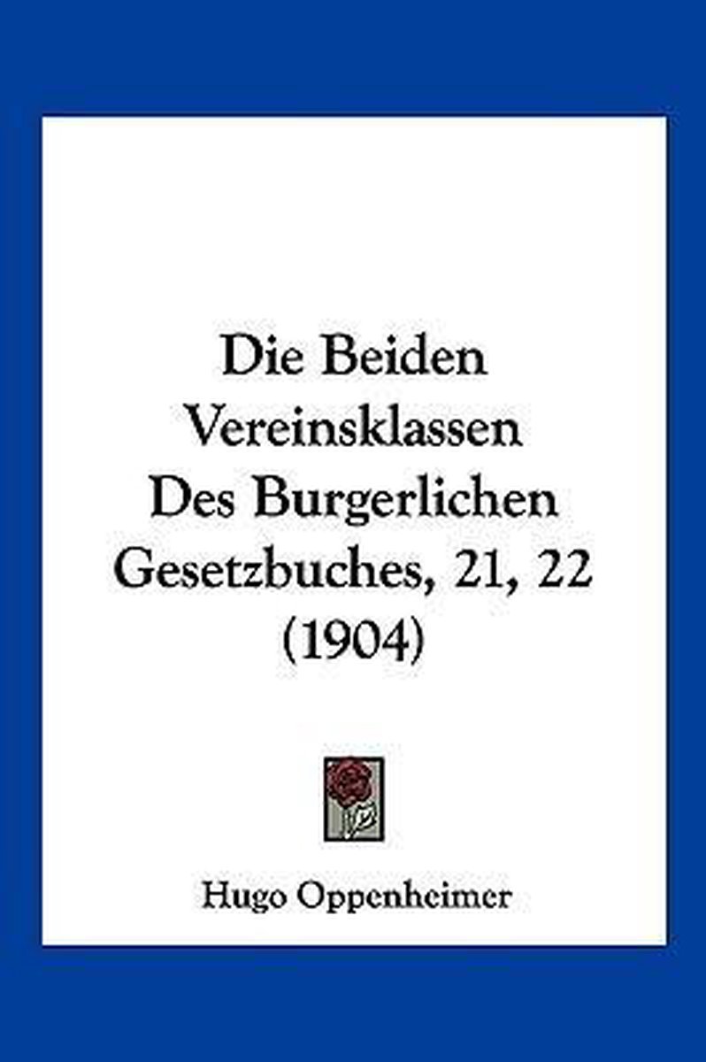 Het enige gevonden boek is Die Beiden Vereinsklassen Des Burgerlichen Gesetzbuches, 21, 22 (1904).