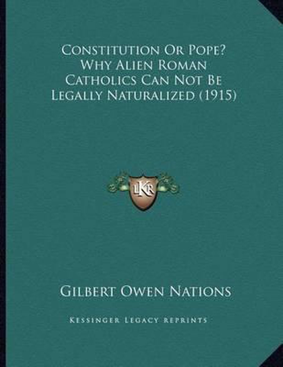 Het enige gevonden boek is Constitution Or Pope? Why Alien Roman Catholics Can Not Be Legally Naturalized (1915).