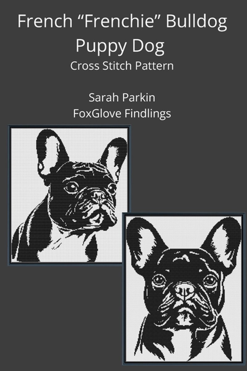 Het enige gevonden boek is Dogs In Cross Stitch- French "frenchie" Bulldog Puppy Dog Cross Stitch Book.