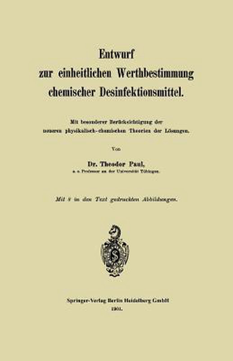Het enige gevonden boek is Entwurf Zur Einheitlichen Werthbestimmung Chemischer Desinfektionsmittel.