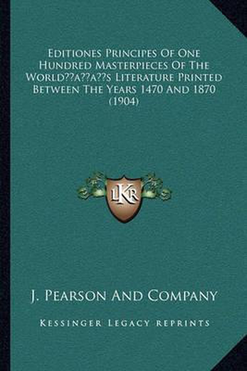 Editiones Principes Of One Hundred Masterpieces Of The World's Literature Printed Between The Years 1470 And 1870 (1904)