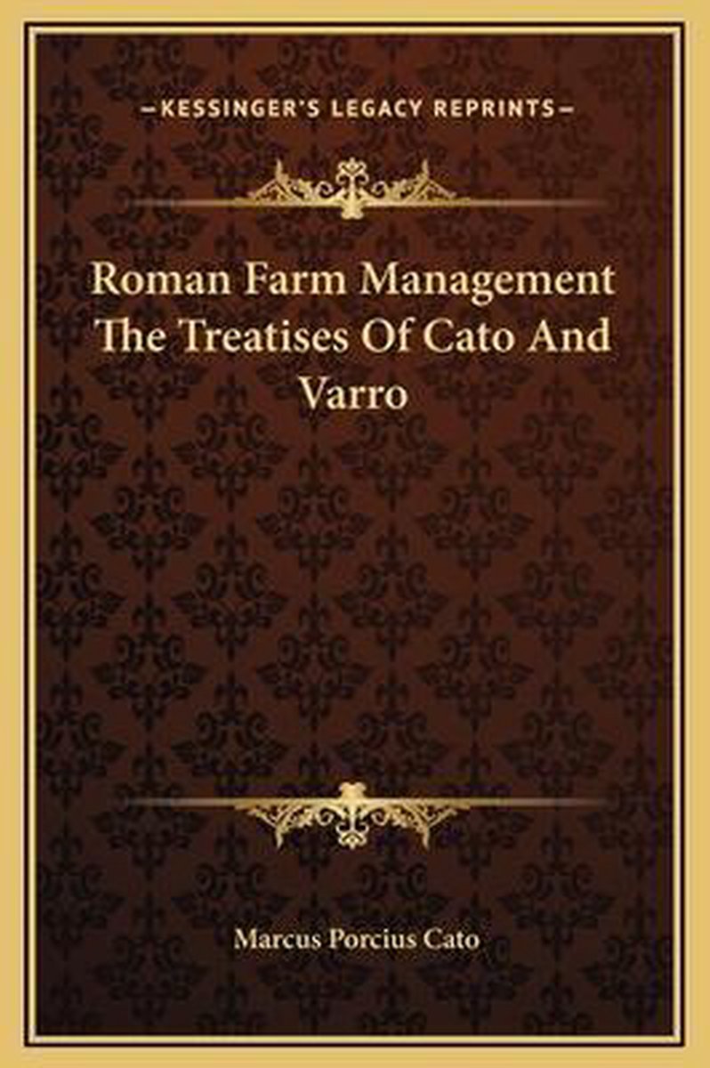 De meest gevonden boeken zijn M. Porci Catonis De Agri Cultura Liber, Roman Farm Management, Rei Rusticae Auctores Latini Veteres, Roman Farm Management The Treatises Of Cato And Varro en M. Porcii Catonis Originum Libri Septem (1858).