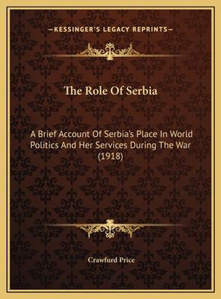 De meest gevonden boeken zijn The Rôle Of Serbia. A Brief Account Of Serbia's Place In World Politics And Her Services During The War. By Crawfurd Price, Light On The Balkan Darkness, Serbia's Part In The War en The Role Of Serbia.