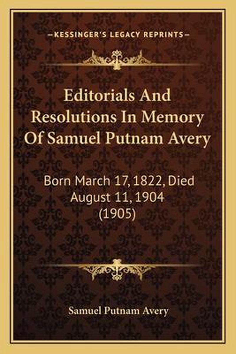 De meest gevonden boeken zijn The Avery, Fairchild & Park Families Of Massachusetts, Connecticut & Rhode Island, With A Short Narration Of Facts Concerning Mr. Richard Warren, Mayflower Passenger, And His Family Connections With Thomas Little.., Editorials And Resolutions In Memory, Mrs. Partington's Carpet-bag Of Fun, The Avery, Fairchild And Park Families Of Massachusetts, Connecticut And Rhode Island (1919) en Editorials And Resolutions In Memory Of Samuel Putnam Avery.
