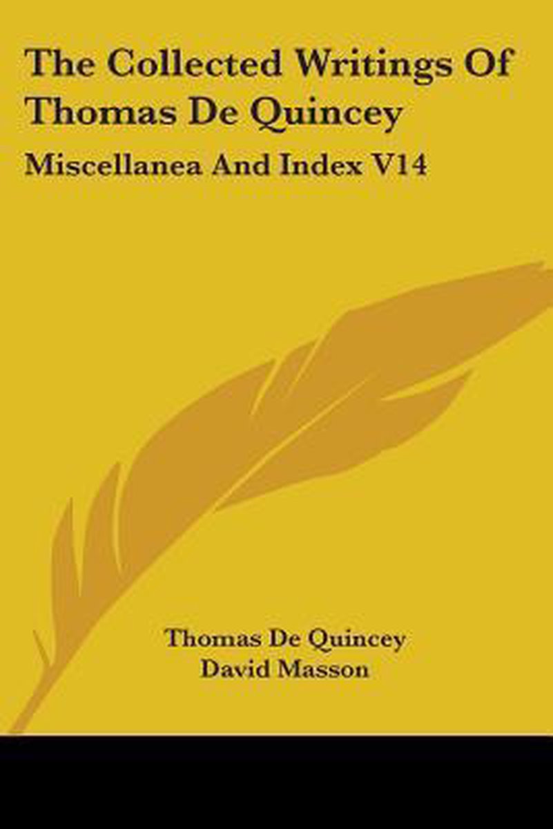 The Collected Writings Of Thomas De Quincey: Miscellanea And Index V14