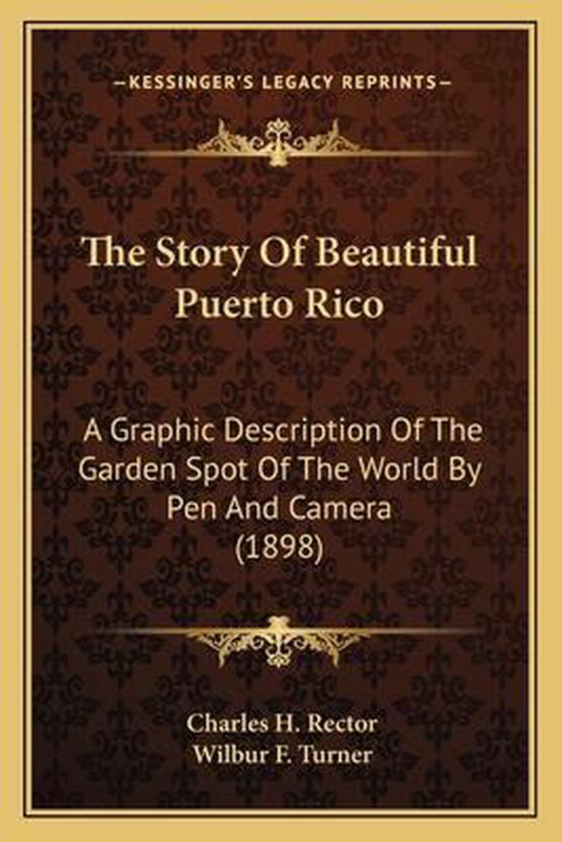 De meest gevonden boeken zijn The Story Of Beautiful Puerto Rico en The Story Of Beautiful Porto Rico; A Graphic Description Of The Garden Spot Of The World By Pen And Camera... By C. H. Rector; Profusely Illustrated With Nearly Sixty...Reproductions From...Photographs By...Wilbur F. Turner And Two Maps.