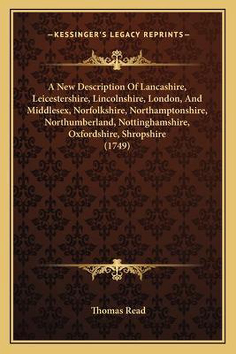 De meest gevonden boeken zijn Paul Redding en A New Description Of Lancashire, Leicestershire, Lincolnshire, London, And Middlesex, Norfolkshire, Northamptonshire, Northumberland, Nottinghamshire, Oxfordshire, Shropshire (1749).