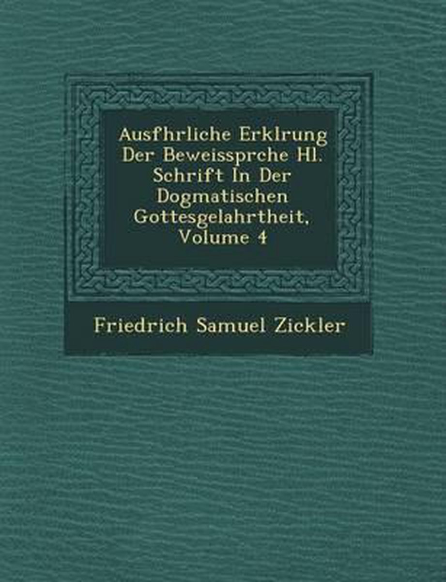 Het enige gevonden boek is Ausf Hrliche Erkl Rung Der Beweisspr Che Hl. Schrift In Der Dogmatischen Gottesgelahrtheit, Volume 4.